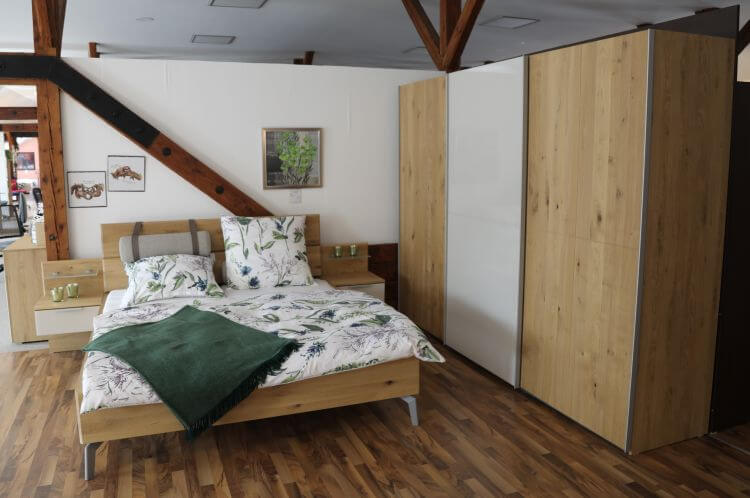 Schlafzimmer „LS001819“ Statt 8.142,-€ Jetzt nur 4.890,-€ Modern und elegant natürlich.Dieses Schlafzimmer in Balkaneiche furniert und Lack weiß bringt nicht nur einen wunderschönen, natürlichen Charme in Ihr Zuhause, es steckt