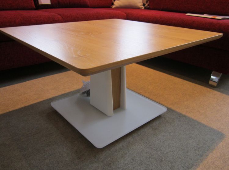 Dieser schöne Couchtisch aus Wildeiche hat eine weiß abgesetzte Säule und der Fuß ist aus Milchglas. Im Fußteil sind Rollen integriert, die Ihnen ein bequemes Hin- und Herschieben ermöglichen.