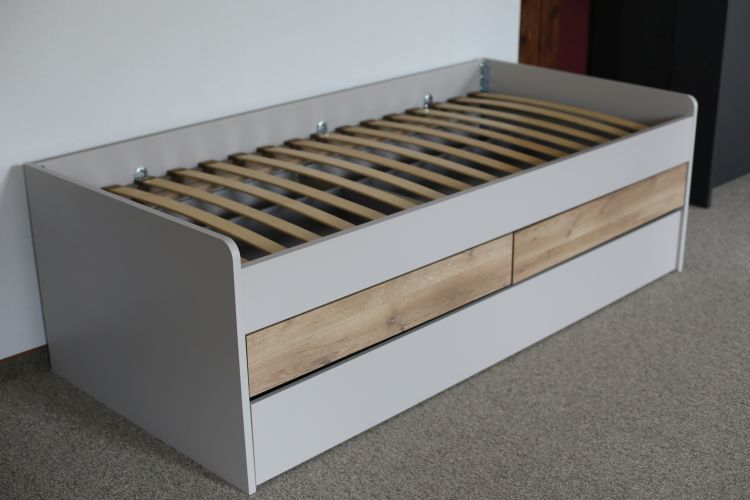 *ohne MatratzenEgal ob Jugend- oder Gästezimmer … die Duo-Liege „New York“ in Risseiche Dekor und Sandgrau bietet bequem Platz für 2 Personen.