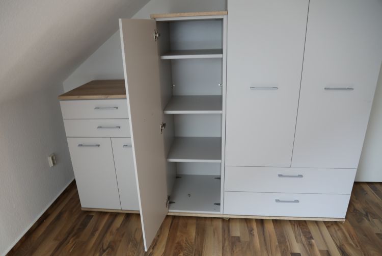 * auch einzeln erhältlichDieses Jugendzimmer in Risseiche Nachbildung und Sandgrau, besteht aus einer Jumbo-Kommode und 2 Drehtürenschränken.
