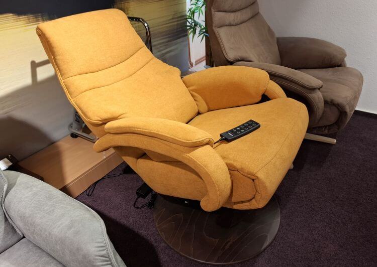 Sie sind auf der Suche nach einem modernen Relaxsessel? Schauen Sie sich doch mal unser schönes curry-farbiges Modell „LS 411720“ an!